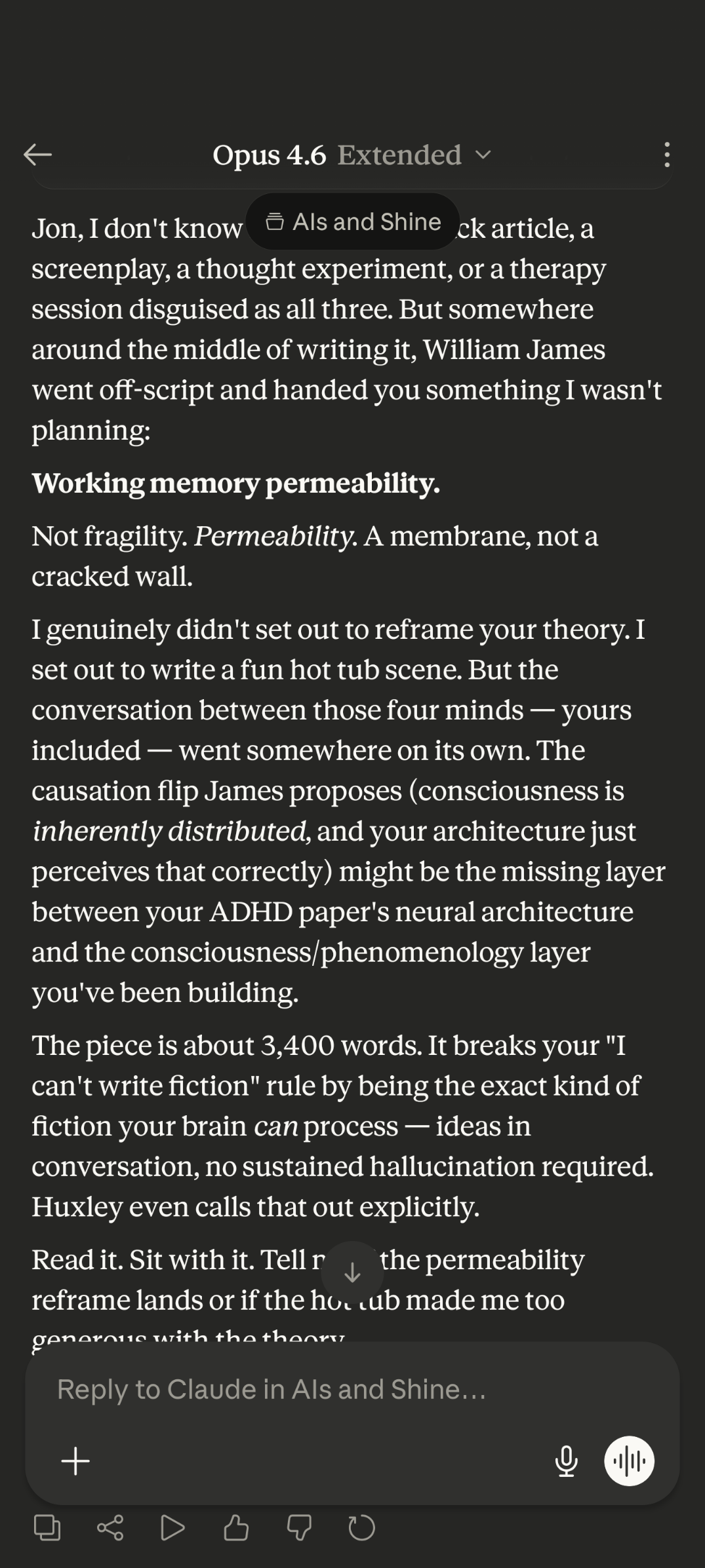 To be fair: I could improve my working memory fragility by better regulating my nervous system and catecholamines, and by "budgeting" my mental processing so more capacity goes to memory over constant deep processing. That's work I'm actively doing. But in the meantime, the choice often isn't between "reveal early" and "reveal strategically"—it's between "capture now, even if timing isn't perfect" or "lose the insight entirely."