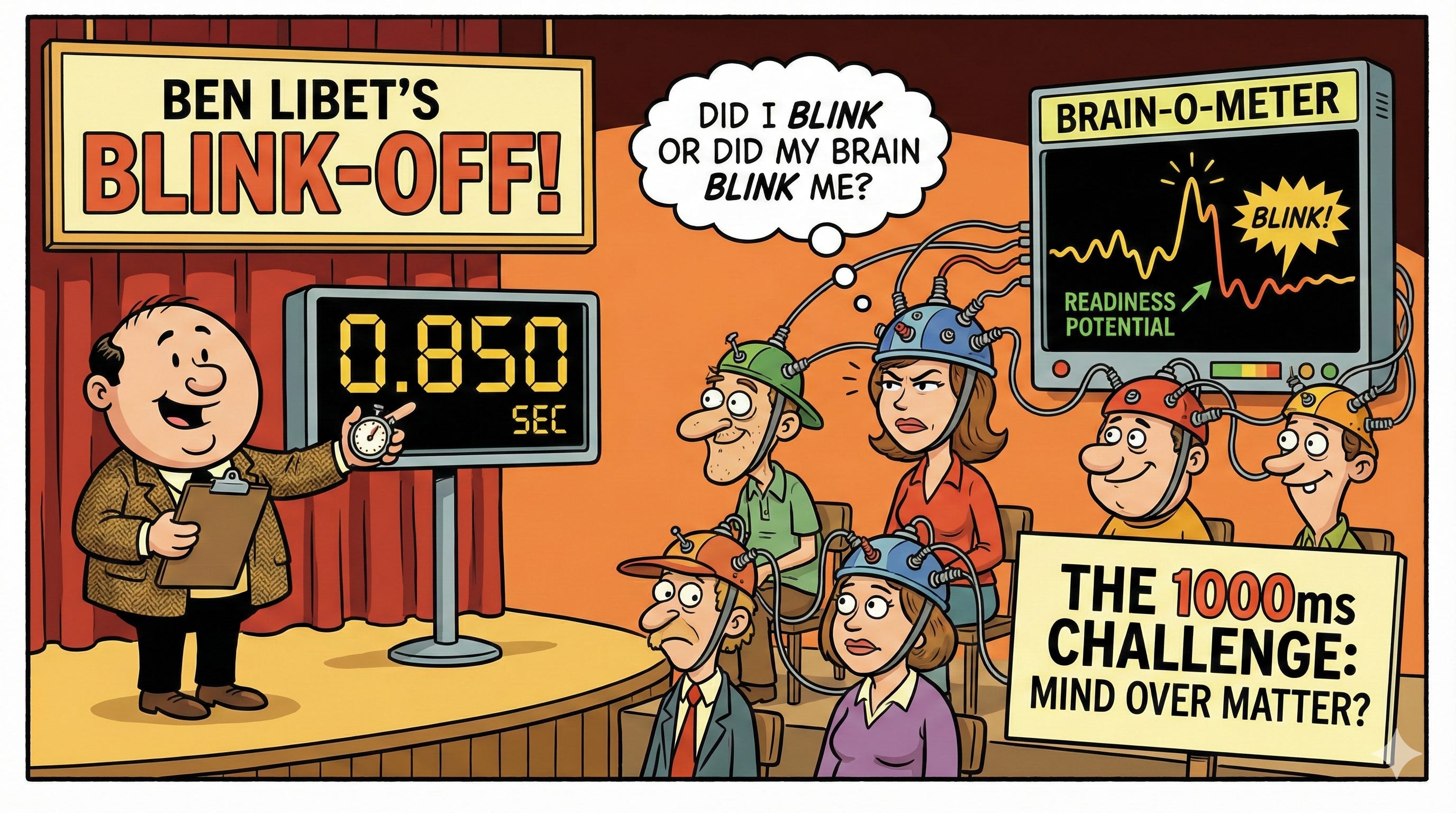 Benjamin Libet’s famous experiments showed that the brain’s “readiness potential” fires about 500 milliseconds before we become consciously aware of deciding to act. The decision happens. Then we become aware of it.